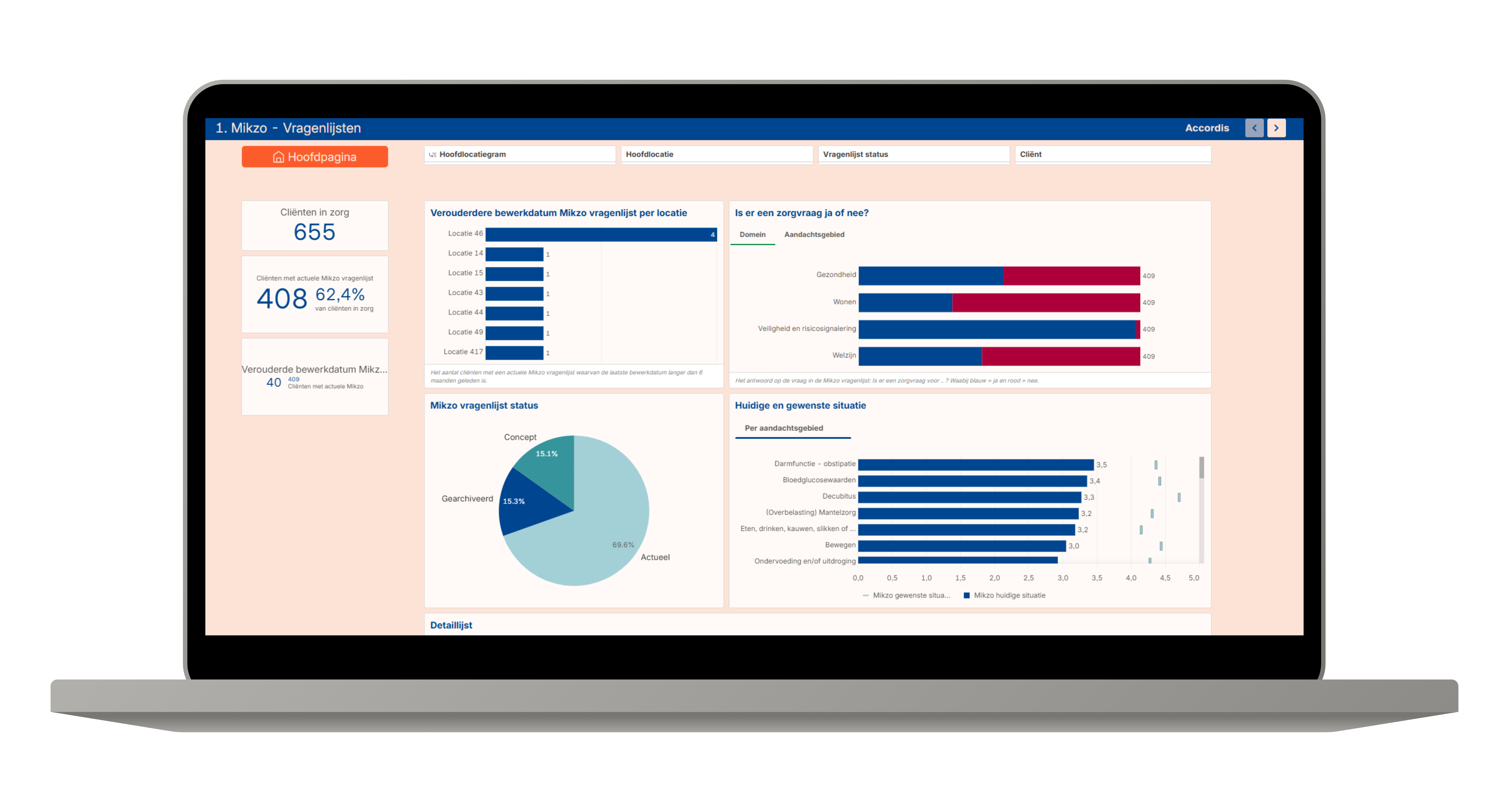 In deze nieuwe app zijn alle inzichten rondom de Mikzo®-vragenlijsten én de Mikzo®-plannen overzichtelijk samengebracht op één centrale plek. Zo wordt het eenvoudiger om sturing te geven aan kwaliteit van zorg op basis van actuele gegevens.